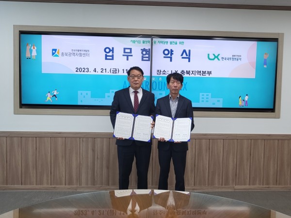 충북광역자활센터에서는 4월 21일 한국국토정보공사 충북지역본부와 기관 간 협력 사업을 통해 저소득층 자활사업 지원을 위한 업무협약을 체결했다.