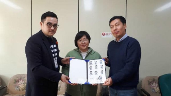 만화가 김윤 – 충청북도광역자활센터 - 옥천지역자활센터는 3월 19일(화) 옥천지역자활센터 회의실(옥천군 옥천읍중앙로126)에서 “자활생산품 품질 향상 및 디자인 개선”을 위한 저작권물 사용승인 업무협약(MOU) 체결식을 가졌다.