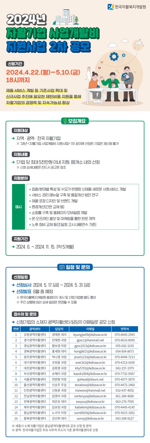 충북광역자활센터, 「2024년 제2차 자활기업 사업개발비 지원사업」 참여 기업 모집