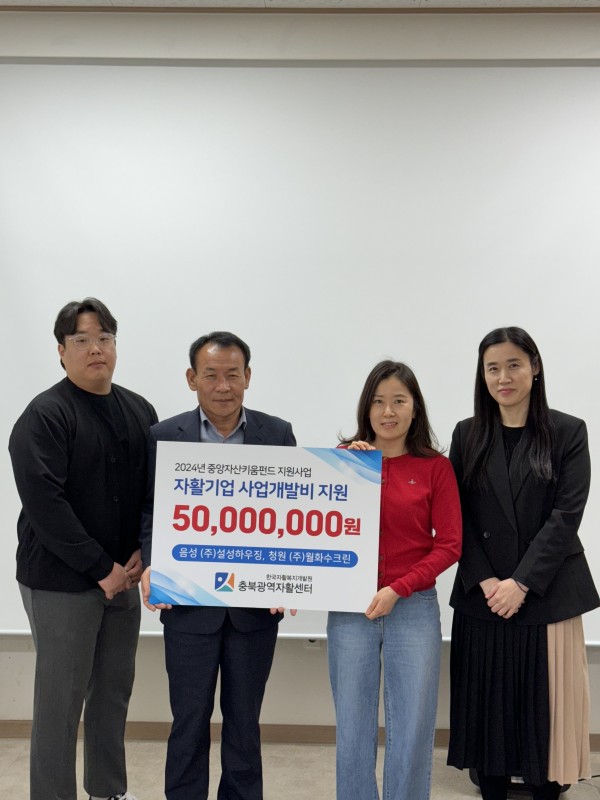 선발된 자활기업은 ▲음성 (주)설성하우징, ▲청원 (주)월화수크린으로 제품·서비스 개발 등 기존사업 확대 및 신규사업 추진에 필요한 제반비용을 각 2,500만원씩 지원한다.