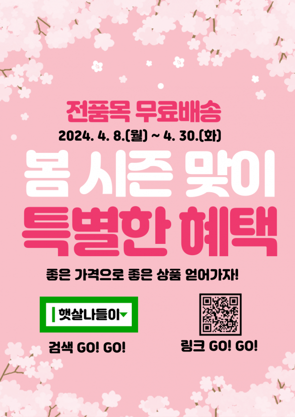 충북 자활생산품 종합쇼핑몰 '햇살나들이' 봄 맞이 무료 배송 이벤트 진행